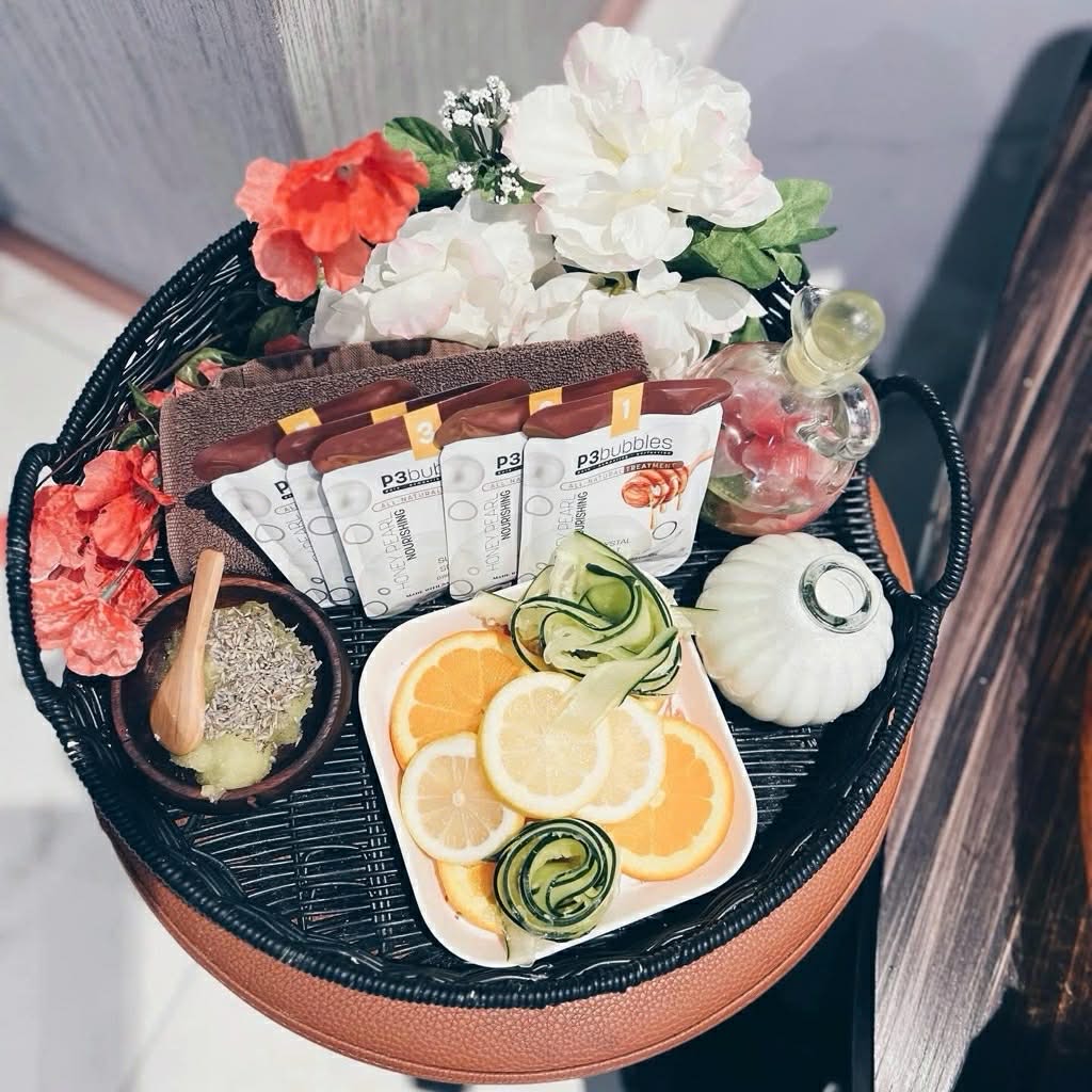 Experience a bubbling, effervescent detox with volcano crystal soak, followed by a gentle sugar scrub. Rejuvenate with an exfoliating organic collagen mask, then nourish deeply with collagen lotion and a warm paraffin wax, candle oil massage and spa steamer treatment.